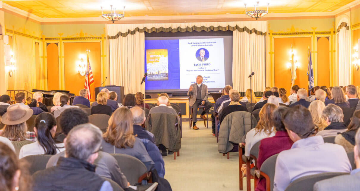 Monmouth University hosted journalist and author Jack Ford on Thursday, Nov. 20 for a discussion and book signing centered on his new novel, “Beyond This Place of Wrath and Tears”. The event took place in the Great Hall Auditorium and drew students, faculty, and community members interested in Ford’s blend of historical storytelling and contemporary relevance.