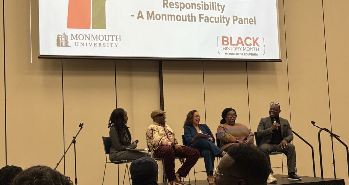 Those subjects were at the center of Standing in Our Shine: Reframing “Imposter Syndrome” as Institutional Responsibility, a Black History Month faculty panel held Wednesday, Feb. 4, in Anacon A of the student center at Monmouth University. Organized and moderated by Olivia Smith, an undergraduate communication major and Marketing and Public Relations, Chair for the Black Student Union, the event brought together many students, faculty, and staff for an honest and straightforward conversation about belonging, representation, and accountability in higher education.