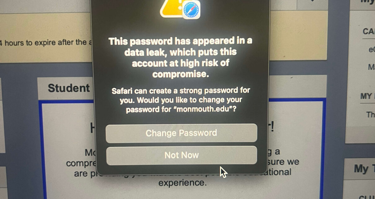 Another student who wished to stay unidentified in this story shared their concern about their data being leaked to the Dark Web when they noticed a pop-up window upon their login into their Monmouth email that read, “The password has appeared in a data leak, which puts this account at high risk of compromise.” “I’m not sure if this notification is linked to the cybersecurity incident, but it made me nervous and worried that it might be, I have no way of knowing,” they said.